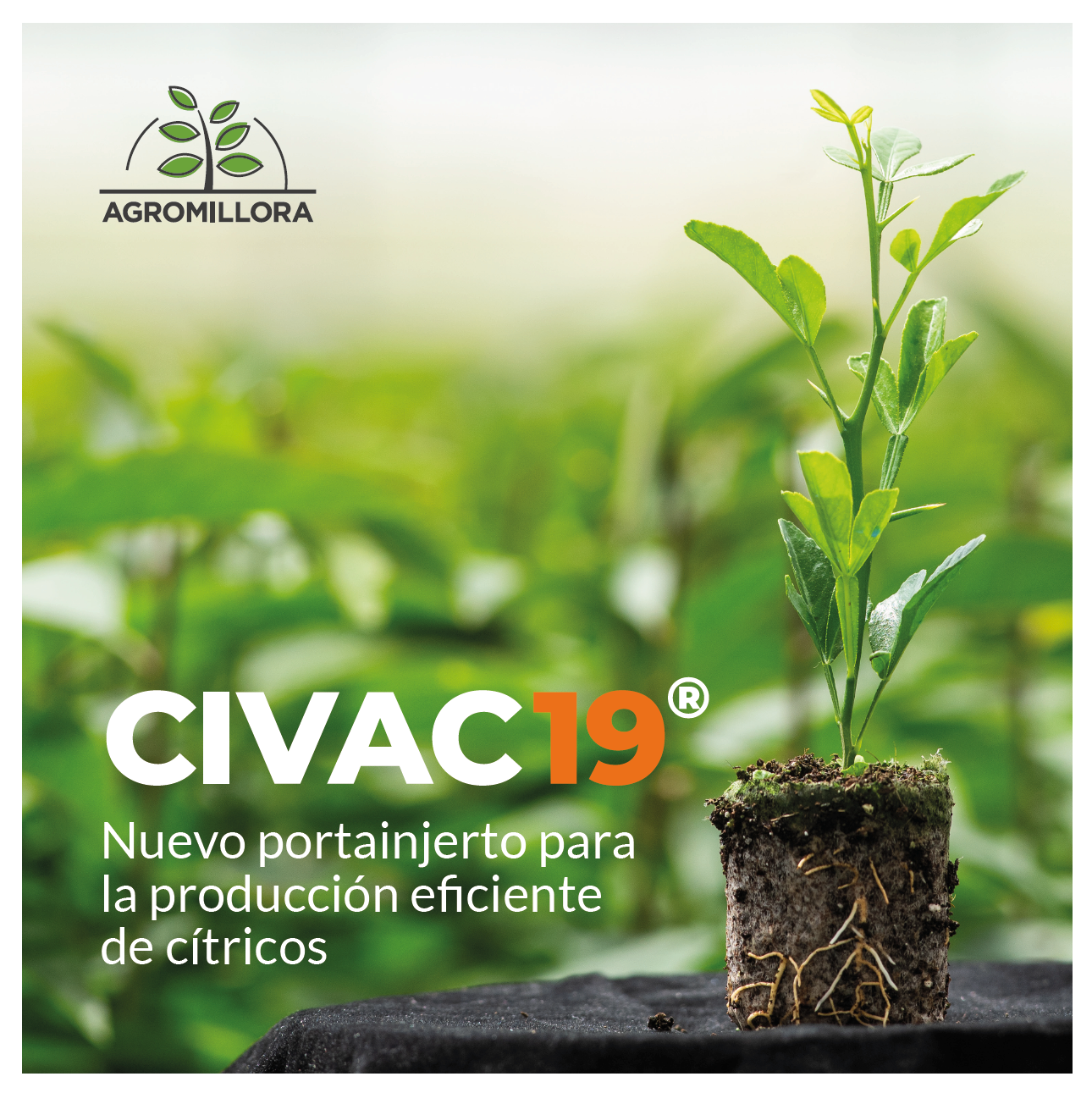- Portainjertos de tamaño controlado: CIVAC-19 es un portainjerto de cítricos de Agromillora en coobtención con IVIA que proporciona un vigor controlado de forma natural y una buena adaptación a una amplia gama de suelos, especialmente los más pesados. El control del vigor es clave para tener copas de pequeño volumen que sean fácilmente mecanizables y eficientes en la distribución de la luz en el interior de la copa.
