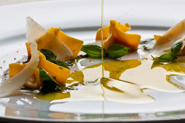 For “humans” — that is, the vast majority of people who are not part of the small circle of olive oil connoisseurs — a quick taste at a booth, either pure or on a slice of bread, may spark a small emotion, but one that fades quickly and rarely leads to a purchase. However, when presented as part of a dish, olive oil spreads its wings and soars. That’s when it can strike the heart and become part of someone’s gustatory memory forever.